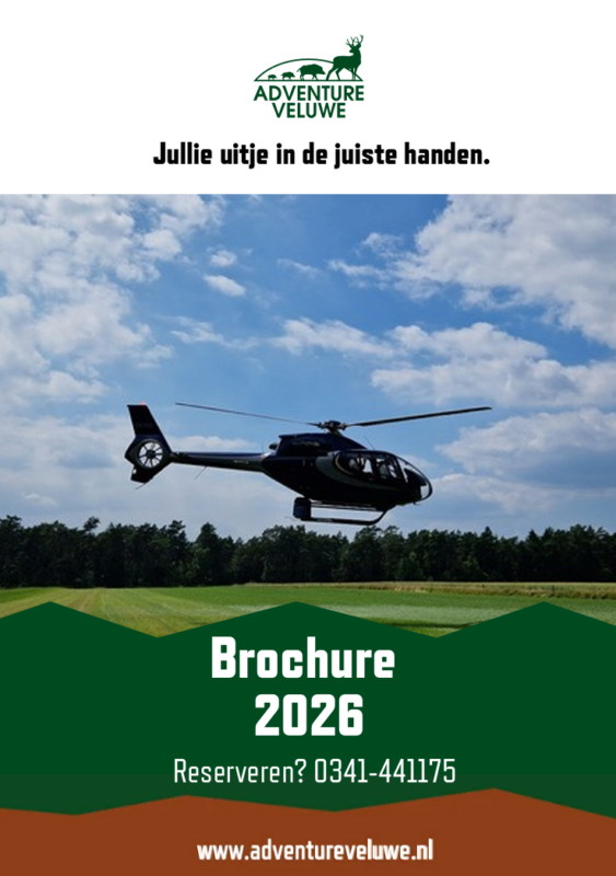 Bij Adventure Veluwe kun je ieder jaar honderden mensen blij maken als in- en outdoor begeleider. Je begeleidt bij Adventure Veluwe namelijk de vetste uitjes! Van helikopter droppings tot Expeditie Veluwe. Van the Hunt tot droppings met een legertruck. De meeste activiteiten worden begeleid in de bossen of op de stranden. Lekker werken in de buitenlucht dus! Je maakt met deze job niet alleen onze gasten blij, maar je eigen lichaam ook!