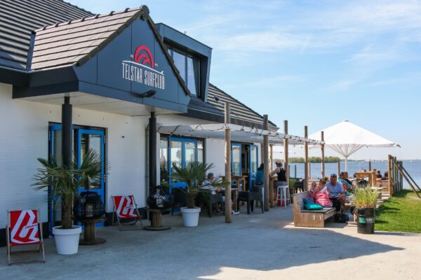 Je bedankt ze voor de leuke middag en geeft aan dat ze nog een hapje of drankje kunnen doen bij Telstar Beach. Het is lekker weer en ze hebben een mooi terras op het strand. De groep ploft voldaan neer.